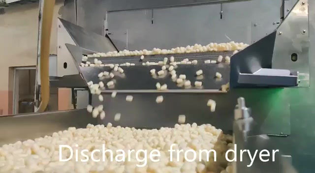 A conveyor belt design buffer store to gently handle your product and create a bufferage between production and seasoning or between seasoning and packaging. This store can greatly improve your line efficiency by reducing the need to stop the process when for instance, refilling seasoning, packaging machine stoppages, process stoppages.